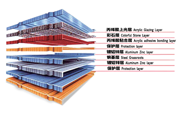 彩石金屬瓦,采用特殊工藝技術(shù)生產(chǎn)制造,以防腐性能優(yōu)異的耐指紋鍍鋁鋅鋼板為基板,以水性丙烯酸酯為粘合劑,以彩色燒結(jié)玄武巖為面層裝飾,再以耐候性極強(qiáng)的丙烯酸樹脂為保護(hù)層的優(yōu)質(zhì)金屬屋面材料。其美觀、輕質(zhì)、耐用、環(huán)保,近年來已經(jīng)成為國(guó)際屋面材料的主流產(chǎn)品,國(guó)內(nèi)高檔建筑使用。>